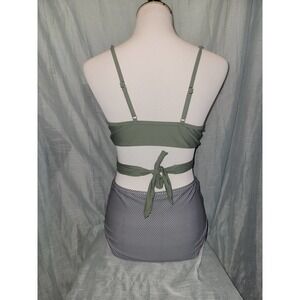 Brand new, never worn army green top and black and white stripe high waisted bottoms. Smoke free home. Straps adjust, and ties around wasit. Size large.