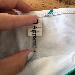 Size large on top and bottom. But fits like a medium on both. Never worn before. New with tags. Very cute on! Has a cute back to it.