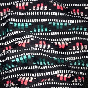 Pattern includes blue/turquoise as well as pink and white. Bottoms are medium. Top is small