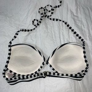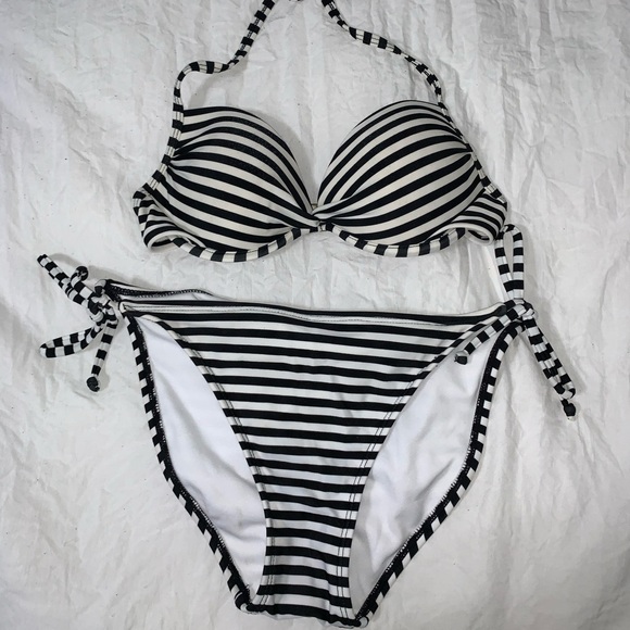 Striped black and white Tie at the top Push up bra Tie at the sides of bottoms