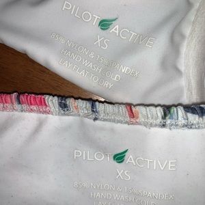 Pilot Active set. Both size XS. Worn twice by me. Last photo shows sand, not visible when worn. I paid $80 for the set but open to reasonable offers & will sell just the top I couldn’t mind keeping the bottoms :)