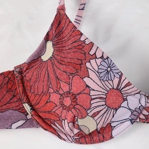 So so cute floral print bikini set! The bottoms are high cut and just the right amount of cheeky! The straps are adjustable and the back clasps very securely.