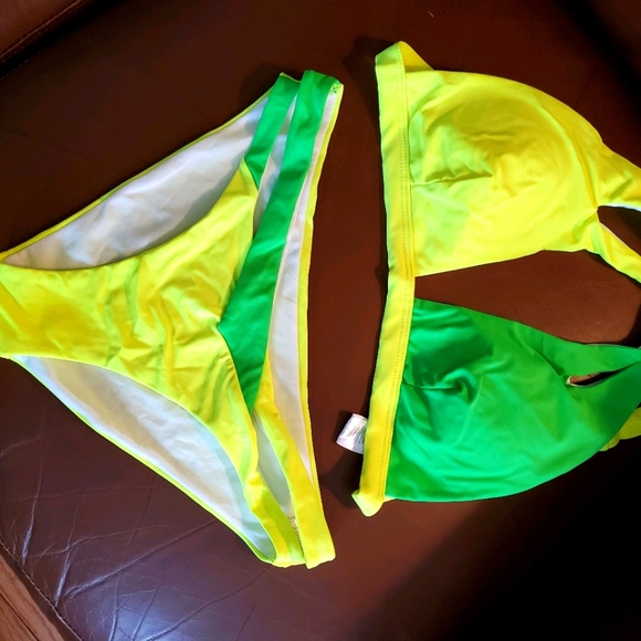 Beautiful bikini set lime and bright green new without tags fit more like a M