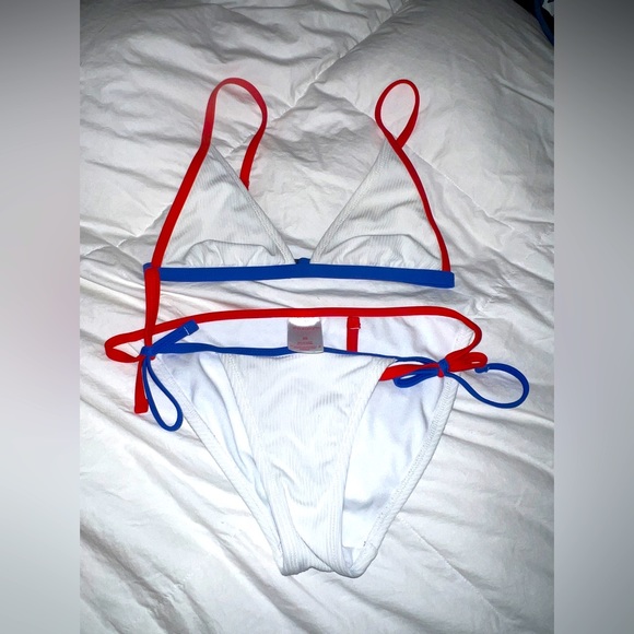 Red white and blue bikini said both top and bottom are a size small