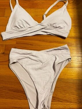 aerie white jacquard crossover bikini