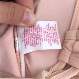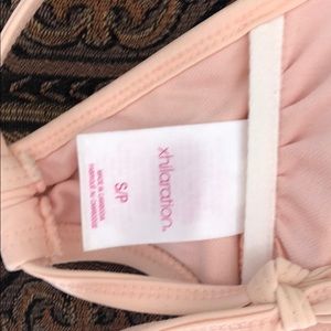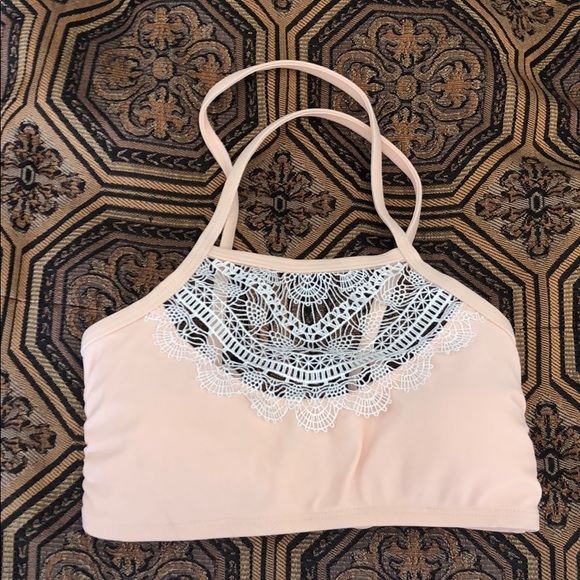 Pale pink/peach padded bralette style bikini top from Target with super cute lacey detailing at the chest. Small mark on the bottom part of the chest which should come out easily in the wash.. it looks like just dust from being in storage.