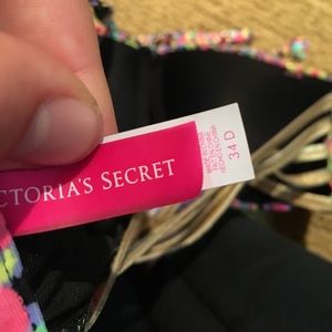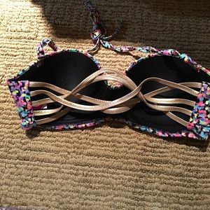 Victoria secret bikini top 34D multi color confetti print with gold band back attachable ties with it. EUC