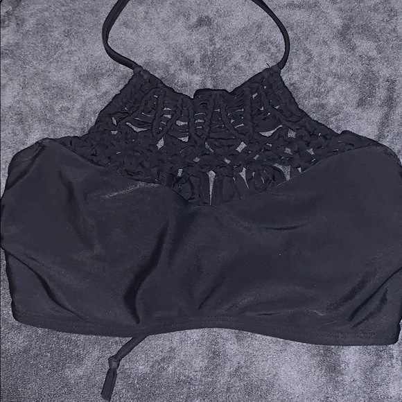 Very cute halter bikini top that ties around the neck and the back. Very comfortable and fits well. Worn 10-15. No damage.