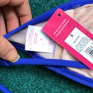 Royal blue bikini top with front tie and cross back tie