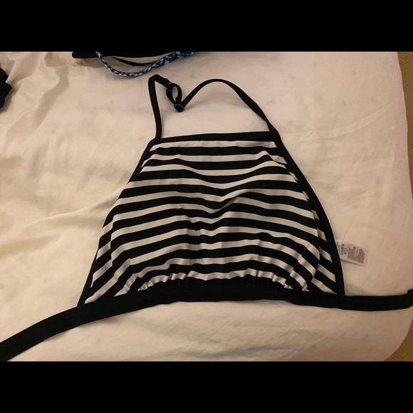 Black and white striped halter bikini top, with removable pads
