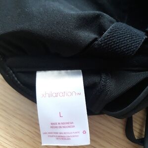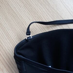 Black pleather, shiny like material bikini top with a super cute mesh design on bottom. Adjustable strings in back. Has light pads in them but they are definitely removable 😁 SUPER CUTE! 🥰