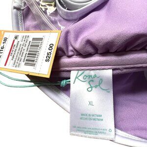 Kona Sol convertible swimsuit top, lavender purple terry with white trim, strapless or removable straps, XL, new with tags