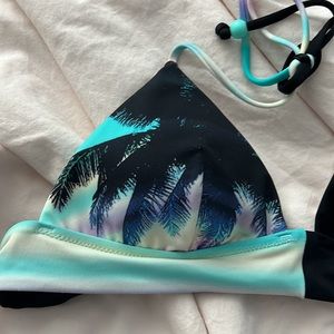 Two bikini tops, same style, different designs. Both EUC lined with removable pads.