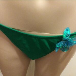 Brand new with tags mismatched bikini. It's hard to tell these two aren't made for one another. Bikini bottom features a sequin flower and tied sides.