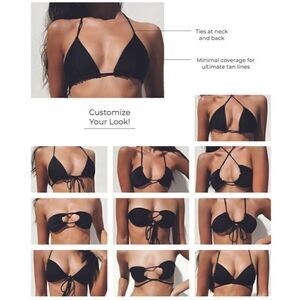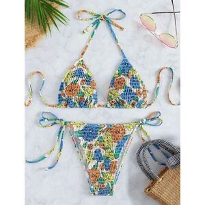 Two piece set: triangle bikini and bikini bottoms included.