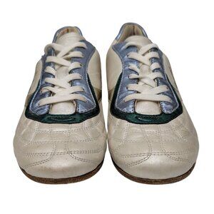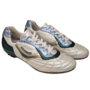 Bikkembergs Futsal Shoes Womens Metallic Green Gold Cream Leather EU 39 US 8.5