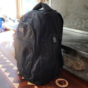 ★USB PORT &ANTI THEFT DESIGN:With built in USB charger outside and built in charging cable inside,this USB backpack offers you a more convenient way to charge your phone while walking. A luggage strap allows backpack fit on luggage/suitcase, slide over the luggage upright handle.