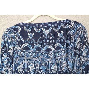 This is a Bila 3/4 Balloon Sleeve Gauzy Top that is a size XL. It is very flowy and pretty. It has a paisley type print and is 100% Rayon. It is a bit oversized for comfort. Laying flat, it measures: Armpit to armpit-25" and the Length is 28.5". It has that Bohemian Vibe. In Good Condition.