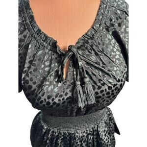 Bila 77 Mini Dress Sz. S - Satin, Forest Green, Tassle, Shirred, Tiered, NYE