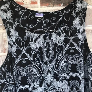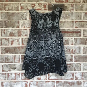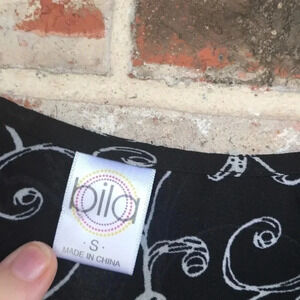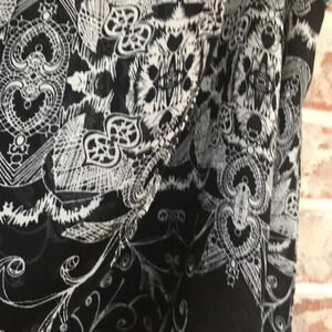 Lined with contrasting fabric, this flowy top wraps one side over the other in the back as I tried to show in pics.