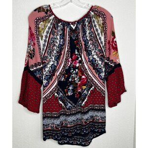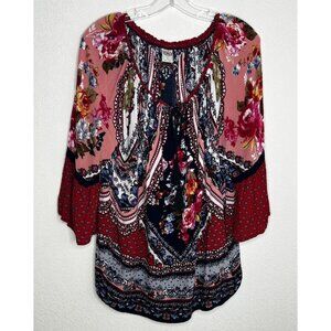 Bila Blouse Womens Large Boho Peasant Top Floral Patchwork Tassel Tie 3/4 Sleeve