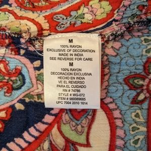 Bila Boho Hippie Print Cold Shoulder Red Print Loose Fit Top Size Medium