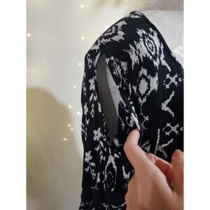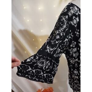 Bila Boho Ikat Cold Shoulder Lace Trim Scoop Neck 1/2 Sleeve Blouse Top Size L Black White