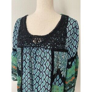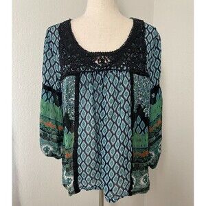 Bila Boho Peasant Top Womens Large Multicolor Sheer Crochet Festival Hippie