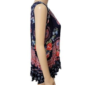 Bila Boho Print Flowy Tank Top Navy Blue high low style