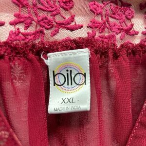 Bila Burgundy Chiffon Beaded Semi Sheer V-neck Peasant Top Women's Size XXL