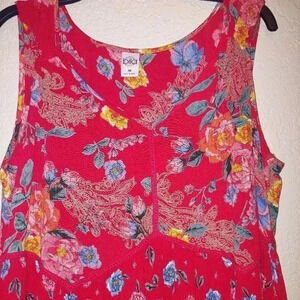 Bila Caroline Gauzy Flowy Tiered Red Floral Cottage Dress Size Medium