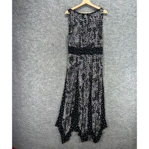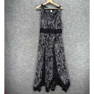 Bila Dress Women L Large Black Floral Maxi Long Sleeveless V-Neck Rayon Casual