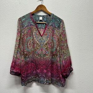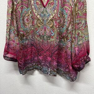 Bila Multicolor Paisley Beaded Sequin Semi Sheer Top Women's Size XL