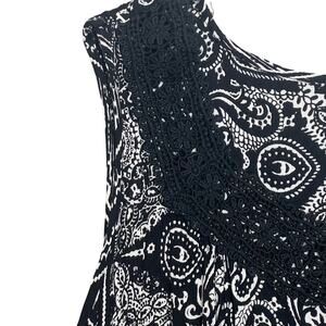 Bila Size XXL Black White Print Farah Boho Dress Handkerchief Hem Crochet Neck