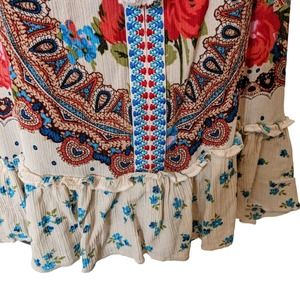 Bila Sleeveless Boho Hippie Cream Print Loose Fit Top Size Medium