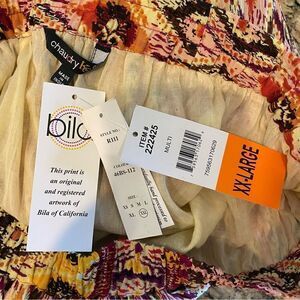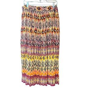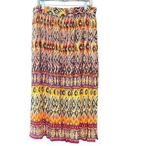 Bila Sz 2XL NWT Earth Tones Yellow Pleated Bohemian Relaxed Flowy Maxi Skirt
