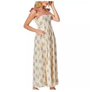 This dress showcases a floral print. This cute midi dress features design details of tie straps and a contrasting neckline band, making it perfect for any occasion. This dress effortlessly combines style and comfort.