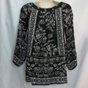 Bila Women's Delaney Two-Tone Print 3/4 Sleeve V-Neck Peasant Blouse Top Size M