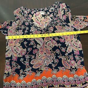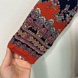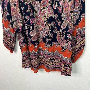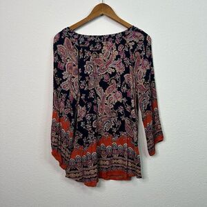 Bila Women’s Multicolor V Neck Paisley 3/4 Sleeve Boho Bohemian Top Size Large