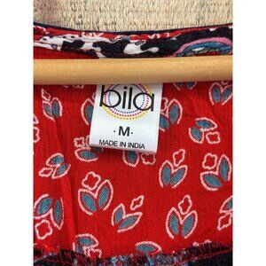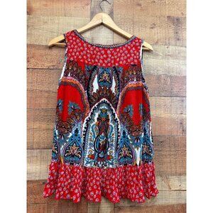 Bila Womens Paisley & Floral Print Sleeveless Top Red/Multicolor Ruffle Hem M