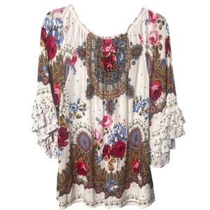 Bila Womens Plus Size Peasant Blouse Size XXL Floral Flowy Bohemian Beachy