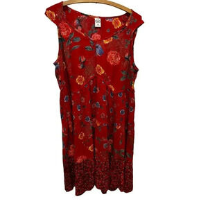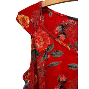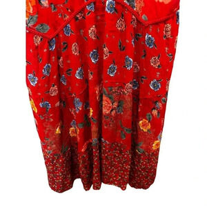 Bila Women's Red Floral Caroline Gauzy Flowy Tiered Cottage Dress Size Medium