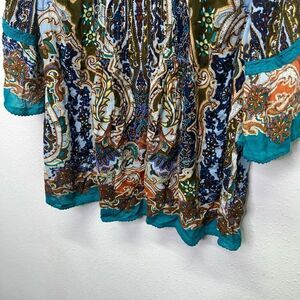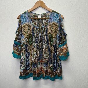 Bila Women's XL Boho Paisley Peasant Blouse Multicolor Cold Shoulder Top