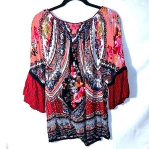 Bila Women's XXL Bohemian Bell Sleeve Floral Tunic Blouse Multicolor