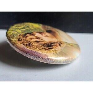 This is a collectible Hobbit button featuring a head shot of young Bilbo Baggins.