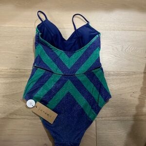 Sold out online. Medium, never worn. NWT Biliblond Arava Stripes Navy Green Swimsuit. Bathing suit.