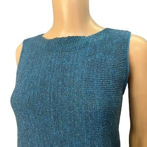 Bill Baber Womens Knit Tunic Tank Top Cotton Blue Lagenlook Speckled Small