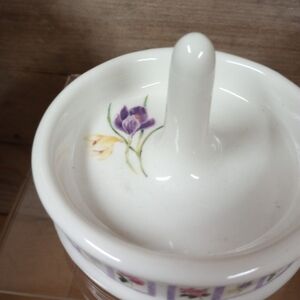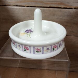Bill Barnes Floral Ceramic Ring Holder Jewelry Dish 4." x 2.75" Crocus. In good condition no chips see pictures for size. Condition is pre owned, used, good condition.