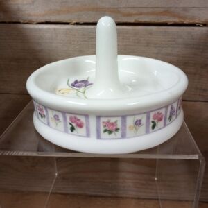 Bill Barnes Floral Ceramic Ring Holder Jewelry Dish 4." x 2.75" Crocus