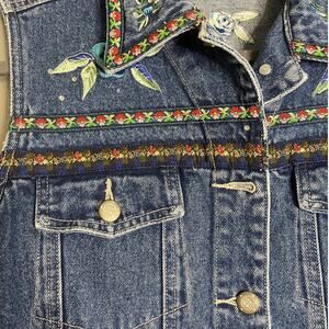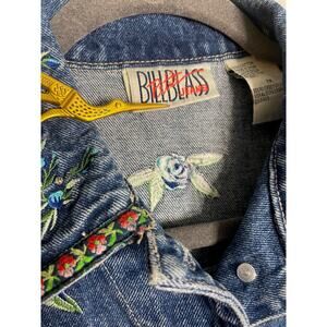 Bill Bass Medium Vest Vintage 90s Denim Embroidered Floral Rhinestone Y2K Rose